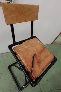 Nastavnik Vladimir Sabljak bio je mentor učeniku Luki Halaru , maturantu 2019./2020. školske godine, koji je izradio ovu zanimljivu visoku stolicu u kombinaciji drva i vodovodnih cijevi.