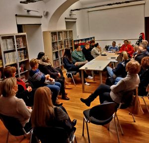 Voditeljica Zvjezdana Jurjević pozdravila je sve prisutne, a posebno nam je bila draga posjeta našega dugogodišnjeg kolege prof.Tironija koji je predložio zanimljive ideje književnog stvaralaštva.Bilo je lijepo čuti i poeziju prof.Šibarića, g.Milana Radočaja, Marka Grbe.