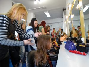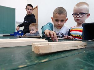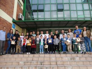 Naši mali gosti zajedno s učenicima 2.f razreda izrađivali su kućice za ptice. Djevojčice, a i poneki dječak, otišli su također i do našeg frizerskog salona gdje su ih naše učenice 2. e razreda počastile frizurom.
