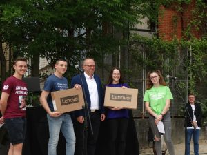 Nakon povorke gradom, nastavili su svoje slavlje na tzv. crvenom igralištu u centru grada. Uz kratak program predstavljanja razreda i najboljih učenika, maturante su pozdravili ravnateljica Zrinka Ceranić Jurković i ravnatelj Hrvoje Magdić, te gradonačelnik Dalibor Domitrović, koji je najbolje učenike generacije i nagradio za odličan uspjeh, svestrano zalaganje i uzorno vladanje u svim godinama srednjoškolskog obrazovanja. Učenik generacije Obrtničke i tehničke škole Ogulin je Nikola Paušić, CNC operater. Čestitamo posebno Nikoli, ali i svim ogulinskim maturantima, te im želimo da život prema njima bude što blaži, da nikad ne odustaju i da radom, trudom i zalaganjem postignu najviše što mogu. Sretno!