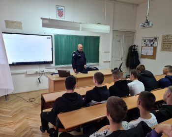 Temeljem dugogodišnje uspješne suradnje s PU Karlovačkom na provođenju preventivnih aktivnosti, danas je našu školu posjetio g. Željko Pavlić, policijski službenik za