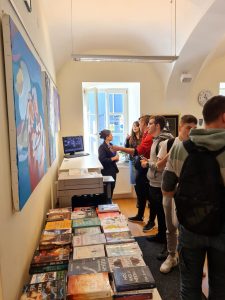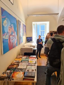 Posjetili smo Gradsku knjižnicu i čitaonicu Ogulin kako bismo pogledali izložbu likovnih radova mladog umjetnika Ivana Koppa s ciljem da uživamo u prekrasnim radovima, ali i da steknemo dojam o tome kakvog su karaktera njegova djela, kakvu tehniku koristi, koju paletu boja, koje motive i tome slično.