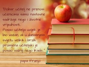 „Dobar učitelj ne prenosi učenicima samo nastavne sadržaje nego i životne vrijednosti. Posao je učitelja uvijek bio važan, ali u današnjem svijetu velikih i brzih promjena učiteljski je posao važniji nego ikada. “ (papa Franjo)
