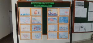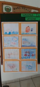 Nakon što su poslušali i pogledali snimku, polaznici vrtića grupe Ribice na papir su bojicama prenijeli svoje dojmove te su tako nastali lijepi radovi koji sad krase hol naše Škole.